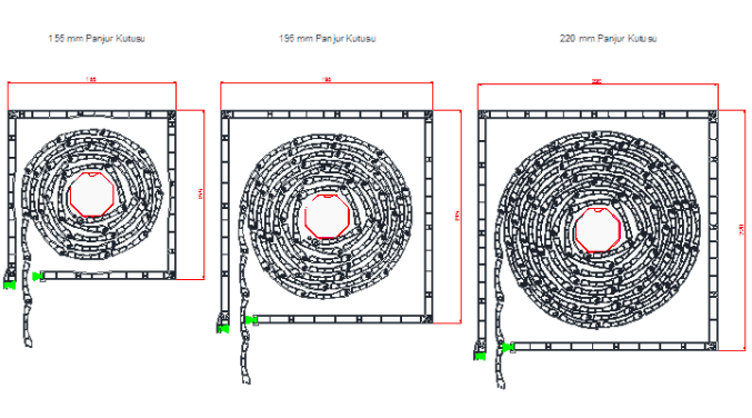 Shutterbox panjur sistemleri 3 farklı ölçüde kutu sisteminden oluşmaktadır.