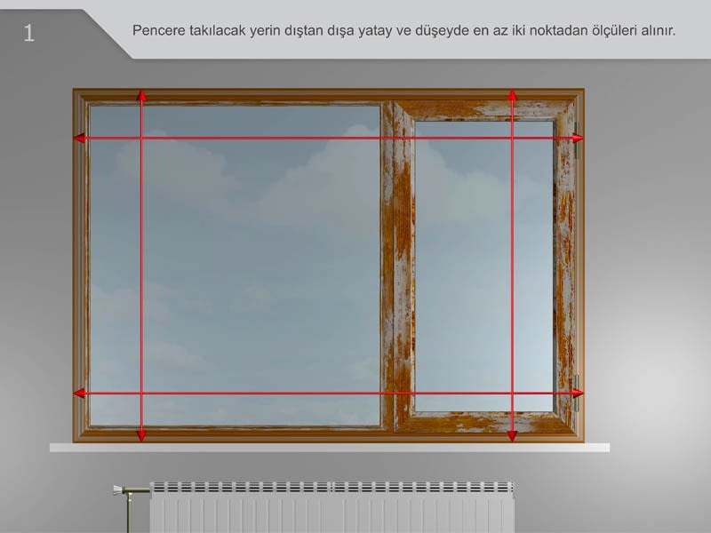 Pencere takılacak yerin dıştan dışa yatay ve düşeyde en az iki noktadan ölçüleri alınır.