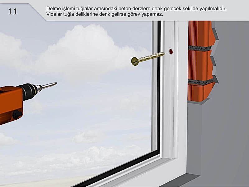 Delme işlemi tuğlalar arasındaki beton derzlere denk gelecek şekilde yapılmalıdır. Vidalar tuğla deliklerine denk gelirse görev yapamaz.