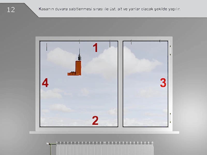 Kasanın duvara sabitlenmesi sırası ile üst, alt ve yanlar olacak şekilde yapılır.