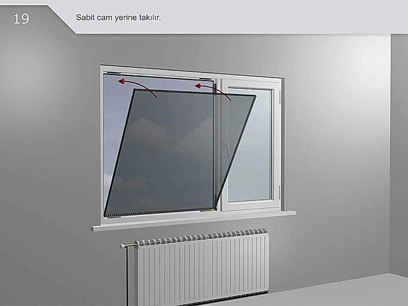 Sabit cam tarafının tüm cam çıtları yerine çakılır.